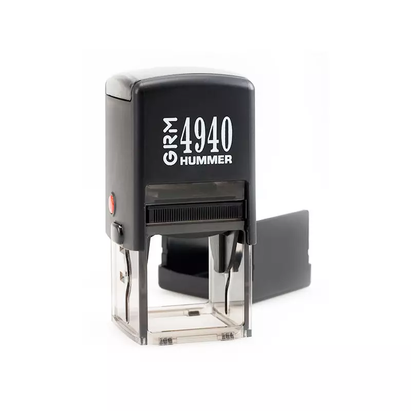 Sello de caucho de entintado automático tamaño 41x41mm. Con tapa de cierre incluida.